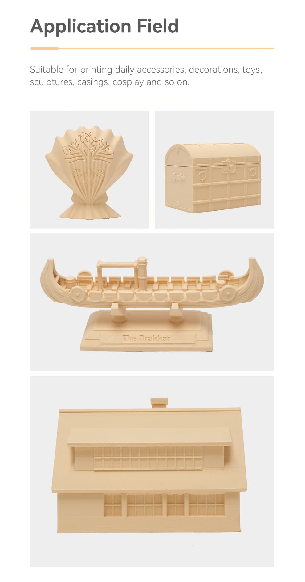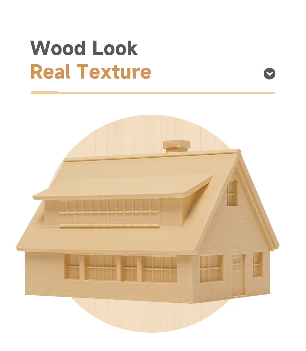 - 【Environmental Friendly PLA】Wood PLA is a mixture of PLA and recycled wood particles, which produces natural wood effect. Made with starch raw materials derived from renewable plant resources, biodegradable and eco-friendly, non-toxic and low odor.